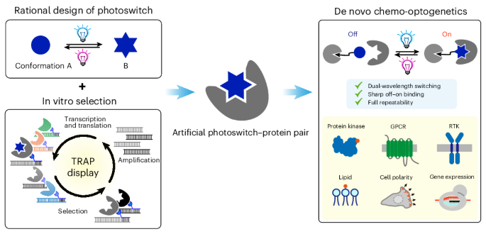 De novo chemo-optogenetics through the rational design of photoresponsive molecules and selection of their artificial protein binding pairs